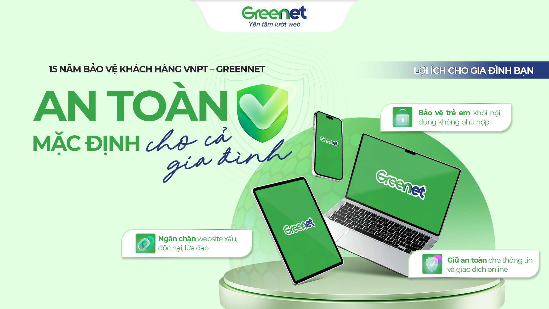 Điểm giá trị của GreenNet nằm ở sự đơn giản, thiết thực và phù hợp với nhu cầu của gia đình hiện đại. Phụ huynh không thể lúc nào cũng ở cạnh con, nhưng vẫn cần một giải pháp hỗ trợ kiểm soát tốt hơn để con được tiếp cận Internet trong môi trường an toàn hơn. GreenNet chính là giải pháp đồng hành cùng các bậc cha mẹ trong việc chăm sóc và bảo vệ con trên không gian mạng. Theo ghi nhận từ VNPT, trong Quý I/2026, GreenNet đạt hiệu quả ngăn chặn website độc hại ở mức rất ấn tượng. Kết quả này càng nổi bật hơn trong dịp hè, khi nhu cầu sử dụng Internet của trẻ em tăng cao, góp phần khẳng định GreenNet là công cụ hỗ trợ thiết thực để bảo vệ người dùng và mang lại sự yên tâm hơn cho các gia đình.